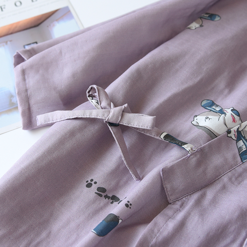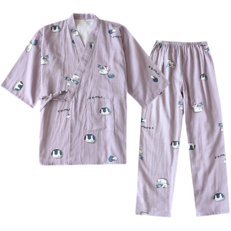 Color classification: Purple-Gauze Kimono Drunk Cat-Female Dark Green-Gauze Kimono Drunk Cat-Men's Pants