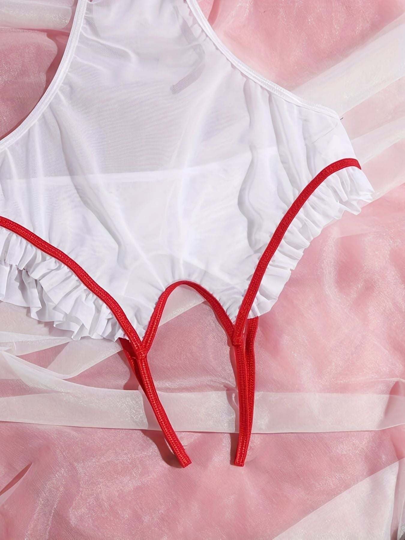 Sweet Nurses Uniform Sexy Seduction Mesh Open One Piece Sexy Lingerie Women