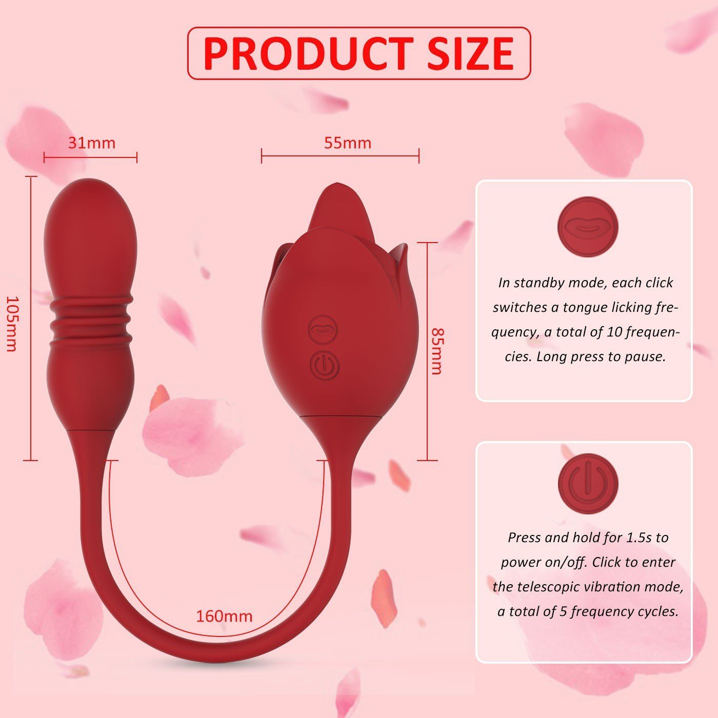 5.Body Safe Silicone Couples Sex Toys and Fully Waterproof Wet Fun.The whole body of this rose for women is made of super soft and body safe Silicone, no need to worry any comfortable feeling when using rose adult toy. Our adult toys for women is also fully waterproof, plus the unibody&non-porous design and removable pieces of this tongue toy for women, make the rose vibrater for women sex easier to clean, ensure more hygienic/odor-free than other womens sex toys for couples.